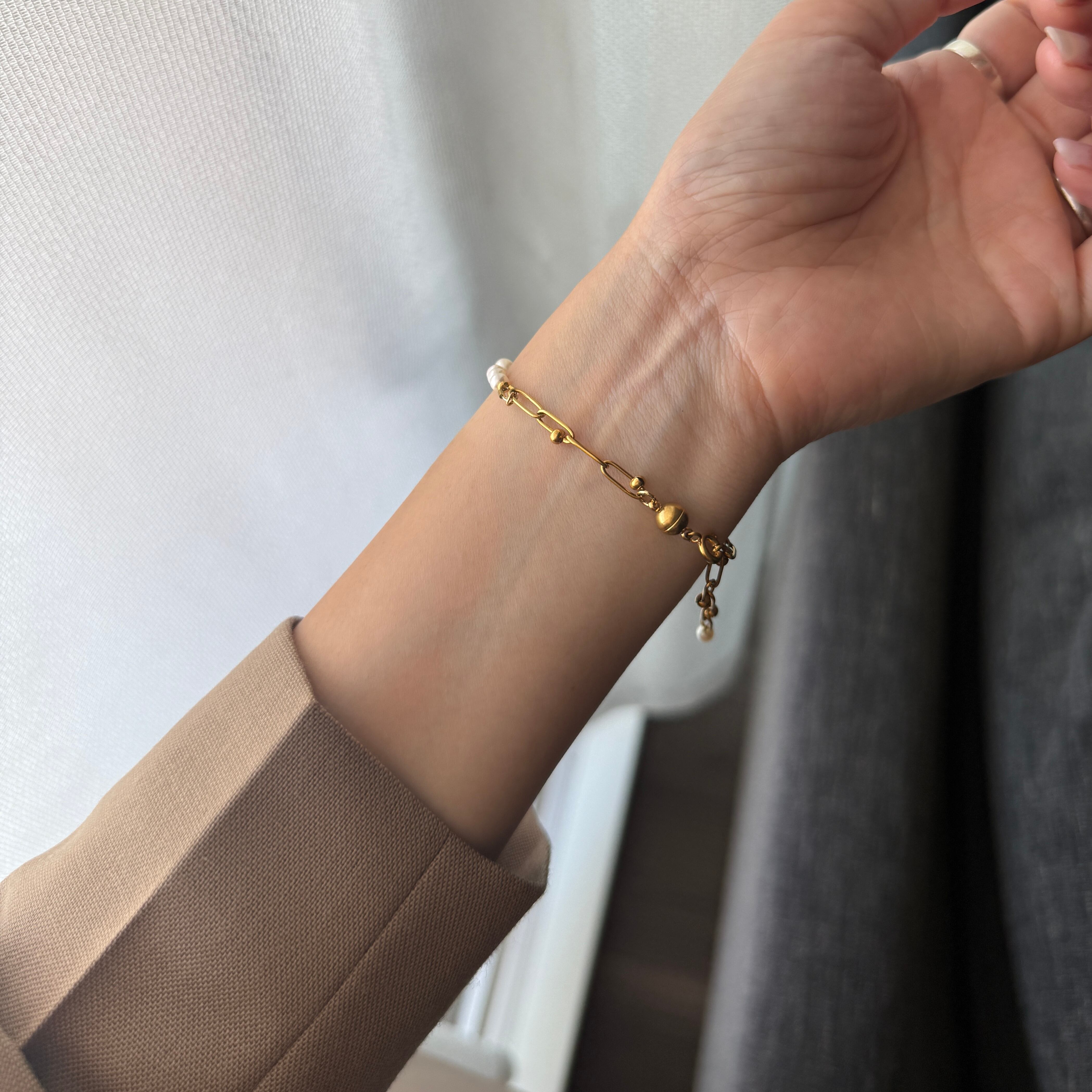 やわらかな光を放つパールが、連なるたびに手元を優しく照らします。