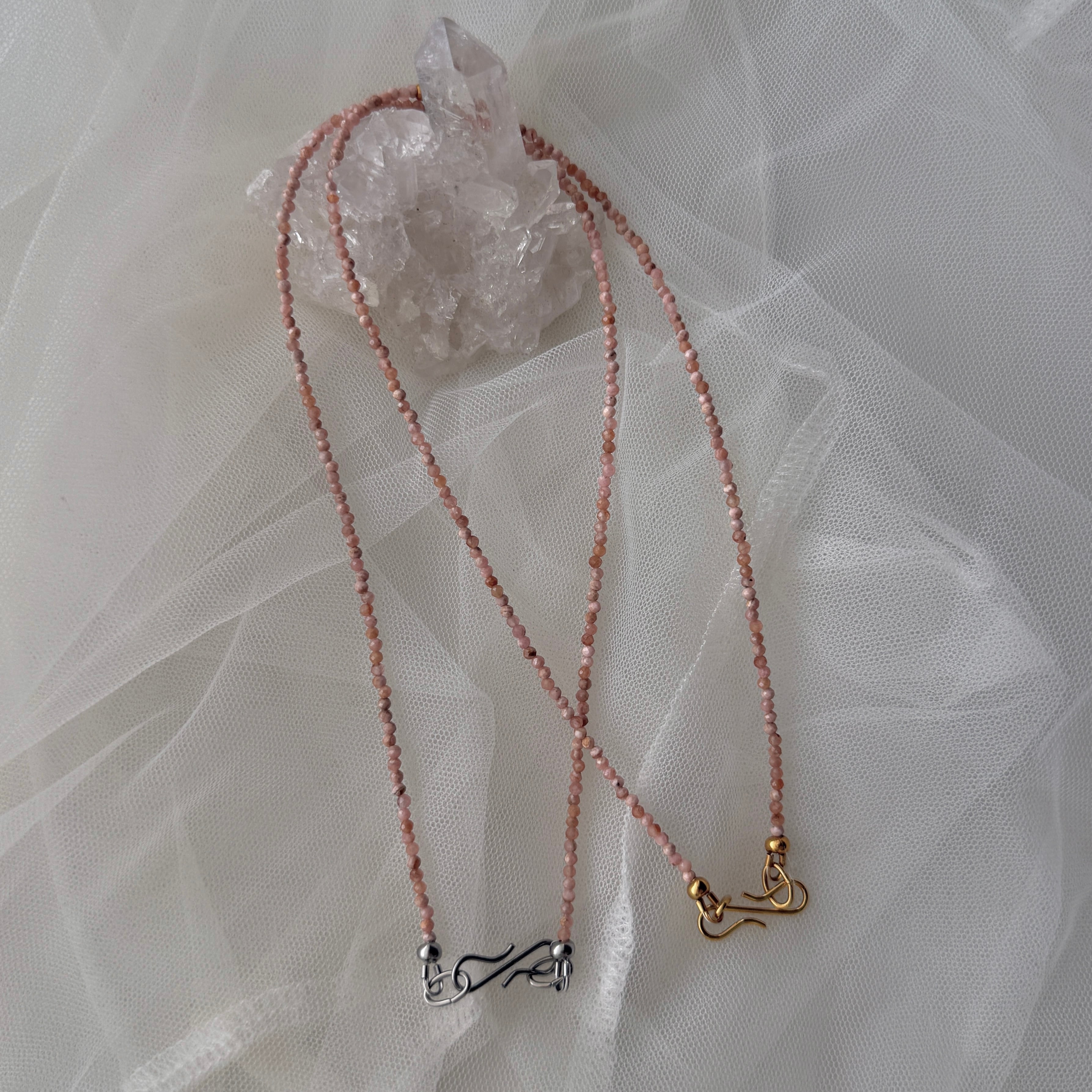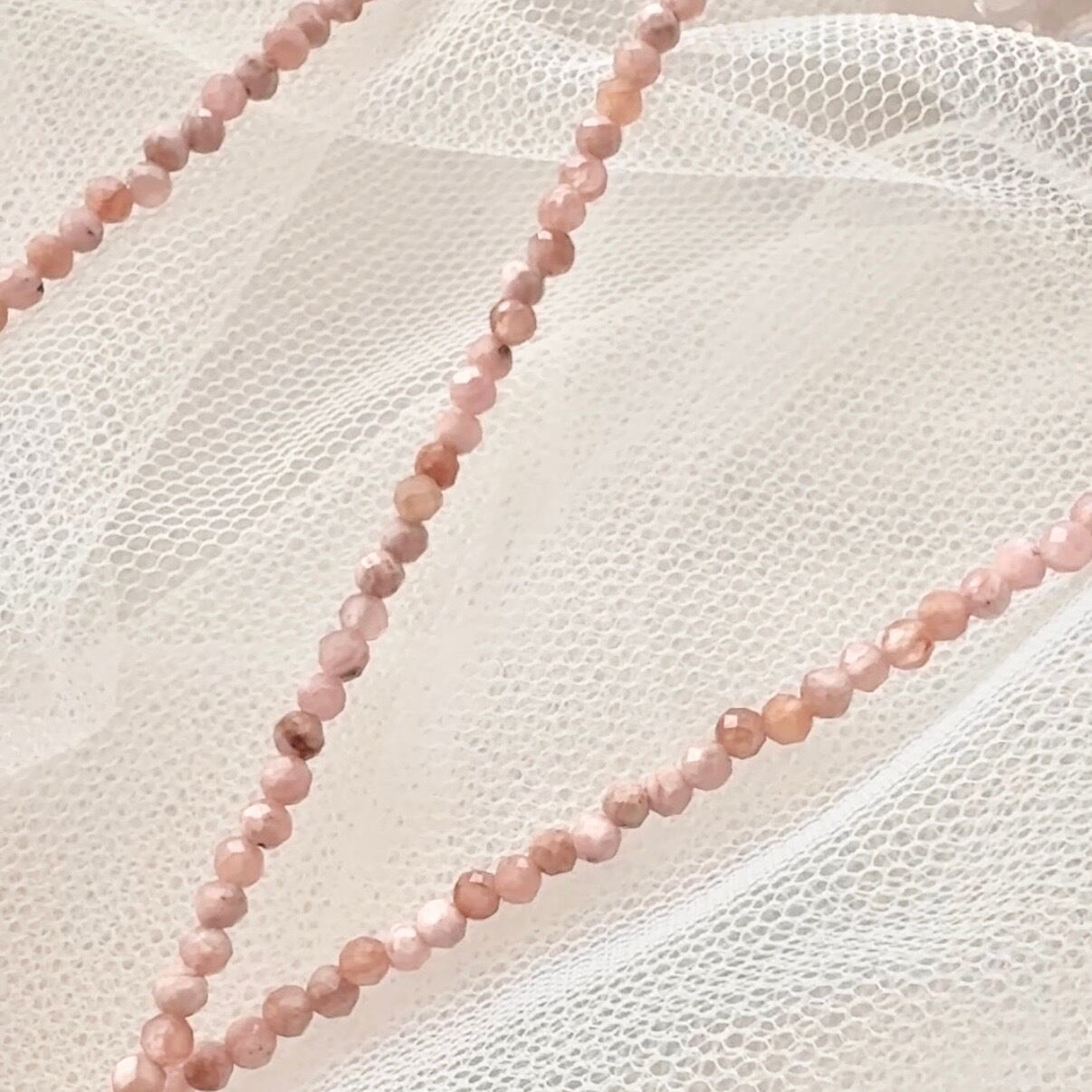 小さなインカローズを連ねた、華奢なチョーカーネックレス。