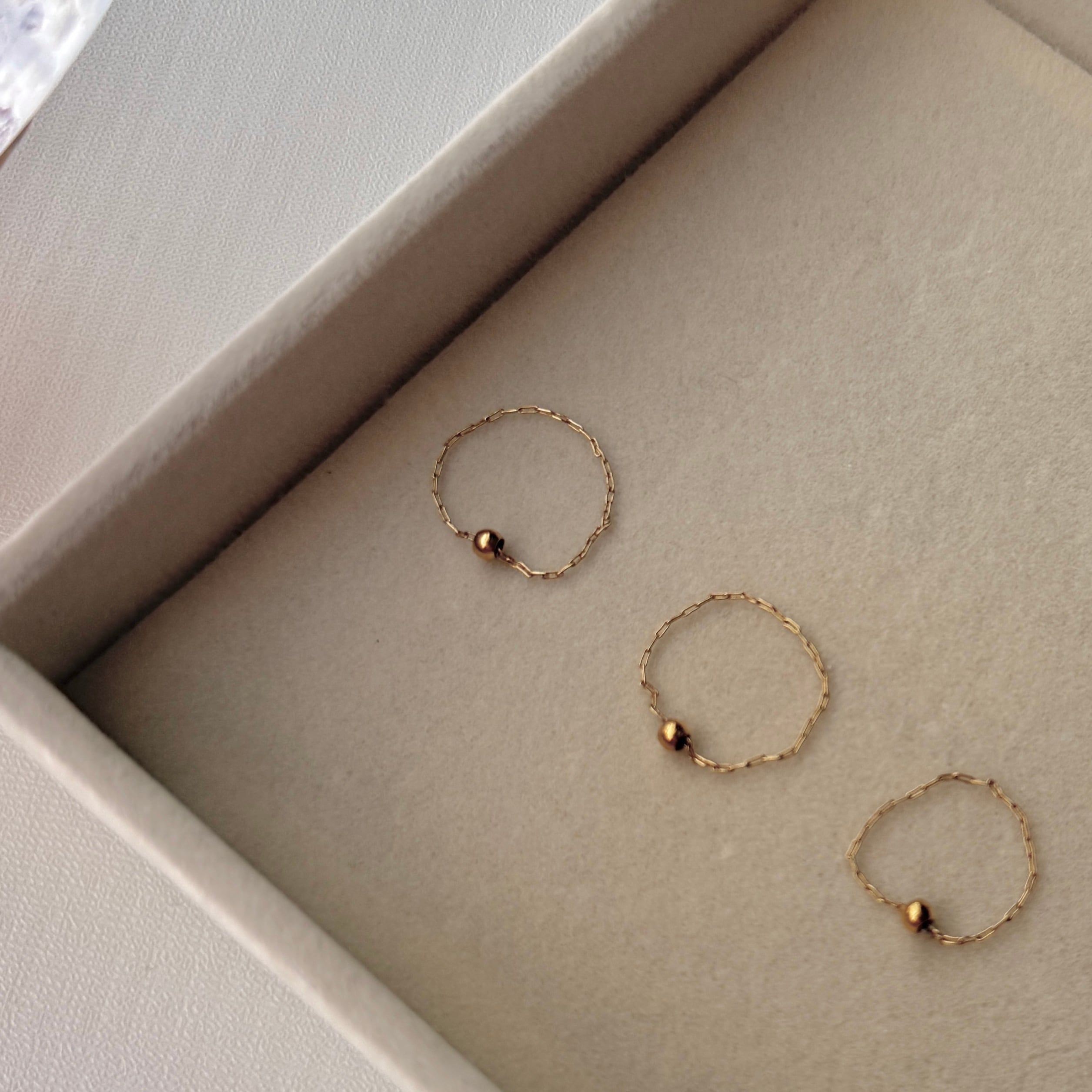 どんなリングとも合わせやすいようデザインした、繊細なステンレスチェーンのリング。